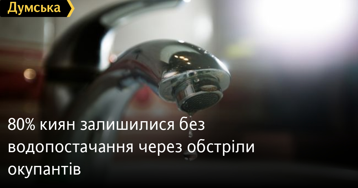 80% споживачів Києва залишаються без водопостачання через пошкодження енергооб‘єкту біля столиці внаслідок ранкових обстрілів.