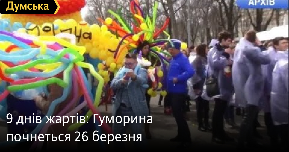 Дев’ять днів жартів. Одеська гуморина почнеться 26 березня. А саме 1 квітня відбудеться гала-концерт. На головній сцені виступатимуть – екс-соліст гурту «Грибі», а також «П’ятниця» та «Время и Стекло». Ще одна яскрава подія – парад клоунів.
