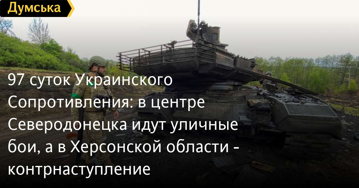 Завершается 97-й день полномасштабного российского вторжения в Украину. По сравнению с предыдущими сутками ситуация на фронтах, кажется, существенно не изменилась. Украинские военнослужащие продолжают мужественно сдерживать российское наступление в Северодонецке и на других направлениях. Врагу выполнить стратегические задачи Битвы за Донбасс по-прежнему не удается.