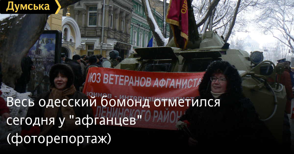 В связи с 21-ой годовщиной вывода Советских войск из Демократической Республики Афганистан, в Одессе прошло торжественное шествие воинов-интернационалистов и членов семей погибших участников боевых действий. В 13:00 колонна прошла от от Свято-Ильинского монастыря по ул. Пушкинской, свернув на ул. Малую Арнаутскую, далее по ул. Белинского в парк им. Шевченко. Там прошел митинг и возложение цветов к Памятнику военнослужащим, погибшим в Афганистане