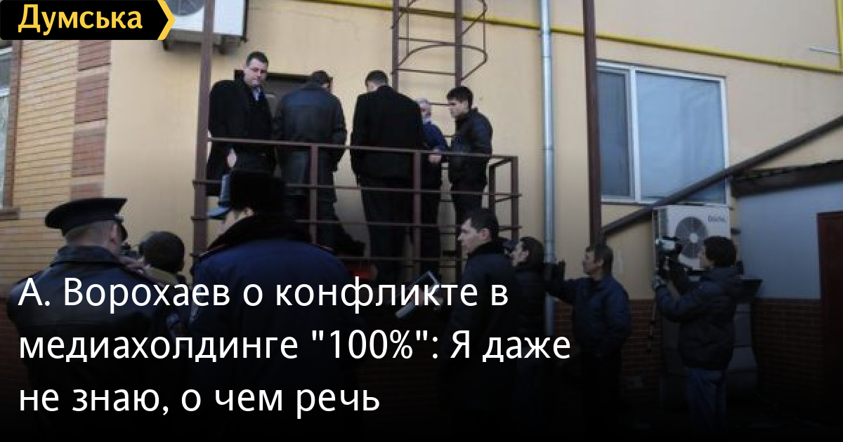 Сегодня в здание медиахолдинга «100%» пришли судебные исполнители для описи имущества холдинга по судебному иску. Входные двери были взломаны с помощью перфоратора. Иск связан с тем, что владелец холдинга (и одновременно владелец Первого кредитного общества) Андрей Азаров в 2004 году выкупил старое здание, на месте которого построил новый четырехэтажный дом, в котором разместился холдинг. Позднее выяснилось, что кроме продавца, совладелицей снесенного здания была еще одна одесситка, которая теперь требует треть помещений нового центра. Суд признал ее правоту.
