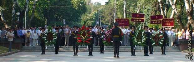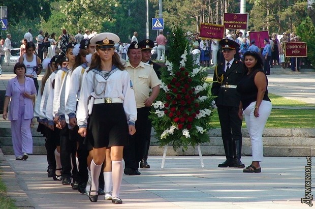 Сегодня состоялся торжественный ритуал возложения венков и цветов к памятнику Неизвестному матросу на Аллее Славы в парке им. Т.Г. Шевченко, приуроченный к 68-й годовщине начала обороны г. Одессы от фашистских захватчиков. В церемонии приняли участие ветераны Великой Отечественной войны, руководители города и области, представители общественных организаций. Губернатор Николай Сердюк отметил, что «К этой дате так же приурочено открытие на Поясе Славы памятника 412 батарее, которая находилась в Коминтерновском районе, и её защитникам. Также заказан памятник 250 шахтёрам, принимавшим участие в защите этой батареи. В этом году будет праздноваться 68 лет освобождения Одесской области с парадом военной техники». ![]() СМЕРТЬ РОСІЙСЬКИМ ОКУПАНТАМ! ![]() ![]() ![]() ![]() ![]() ![]() ![]() ![]() Помітили помилку? Виділяйте слова з помилкою та натискайте control-enter |