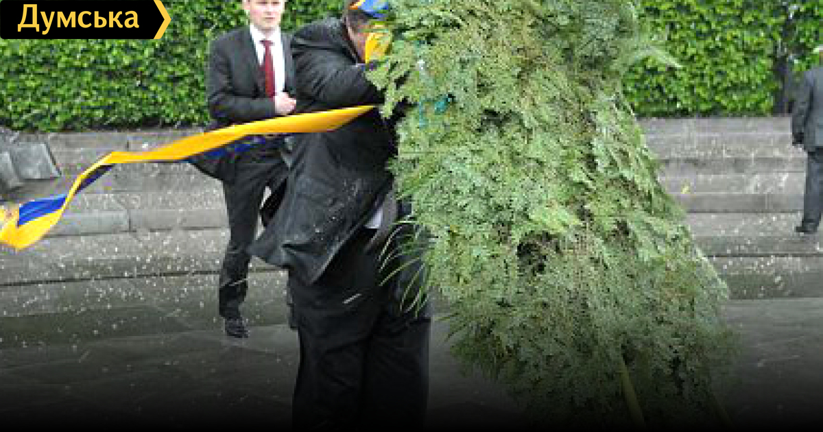 Как известно, Януковича чуть не сбило с ног траурным венком 17 мая в Киеве, когда он вместе со своим российским коллегой Дмитрием Медведевым возлагал венки к памятнику неизвестному солдату под сильный ливень с ветром.