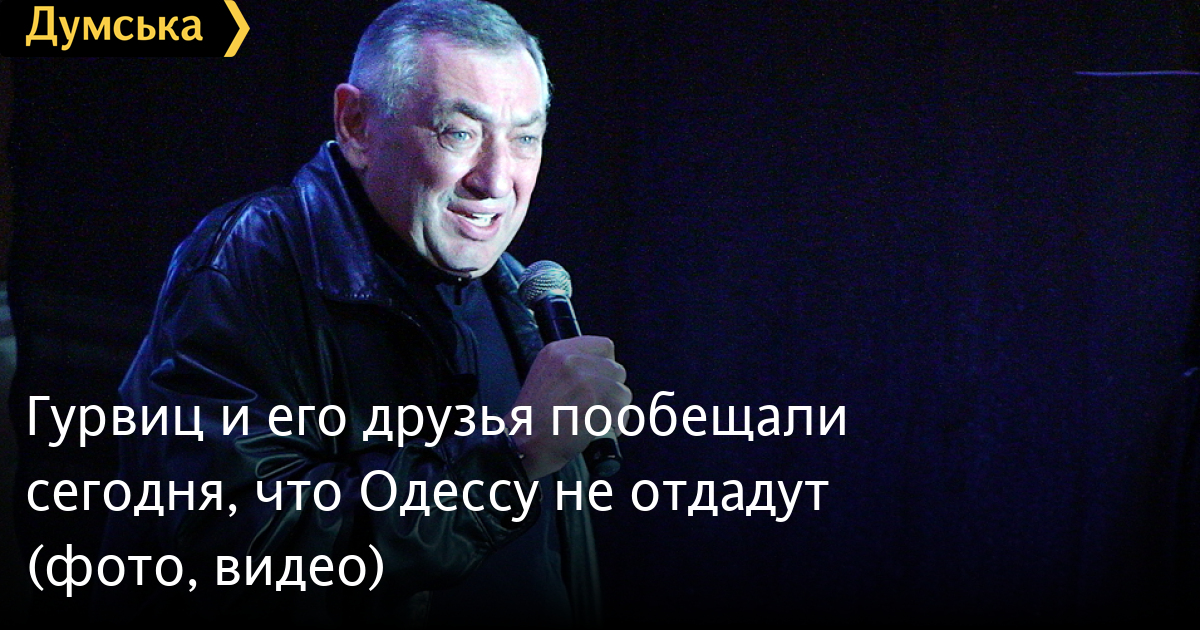 Сегодня вечером на Думской площади, у здания мэрии, прошел митинг в поддержку пока еще действующего мэра Одессы Эдуарда Гурвица. На большом экране показывали результаты экзит-полла, согласно которому Гурвиц стал победителем мэрской гонки, набрав 47% голосов, а со сцены толкали пламенные речи его ближашие сторонники. В частности, политолог Сергей Братчук (в форме подполковника и с медалями на груди), политолог Валерий Песецкий, глава «Комитета обороны Одессы» Сергей Гуцуляк, редактор «Одесского вестника» Александр Каменный, глава одесского отделения «Народного Руха» и замначальника управления культуры горсовета Надежда Яшан, депутат от Блока Гурвица, журналистка Багрий-Шахматова и другие. С другой стороны, ни одного из замов Гурвица на сцене не было.Ведущим встречи был лидер «Свободной Одессы» Марк Соколов.