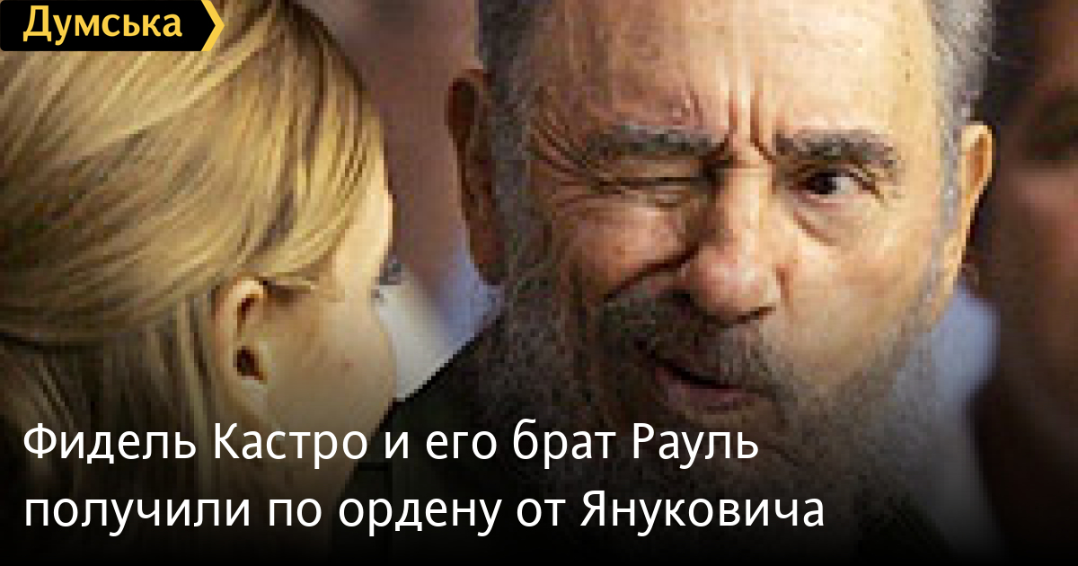 Президент Украины Виктор Янукович наградил орденами первого секретаря компартии Кубы Фиделя Кастро и его брата, председателя Государственного совета Кубы Рауля Кастро. Братья, согласно официальной формулировке, награждены «за весомый личный вклад в развитие украинско-кубинского сотрудничества». При этом Фиделю Кастро достался орден «За заслуги» I степени, а его брату, нынешнему руководителю Кубы, более весомый орден — высшая награда Украины, орден Ярослава Мудрого I степени. Кроме того, Янукович наградил нескольких граждан Кубы, работающих в сфере здравоохранения. Таким образом отмечено их участие в программах реабилитации украинских детей-«чернобыльцев». Напомним, что уже более двадцати лет Куба совершенно бесплатно лечит украинских детей, пострадавших от последствий Чернобыльской катастрофы. За это время через реабилитационный центр «Тарара», расположенный на Кубе, прошли более 25 тысяч детей. В клинике им делают и самые сложные операции — также бесплатно. Отметим, что среди зарубежных наград Фиделя Кастро (а их несколько десятков) есть, в частности, советские ордена Ленина, орден Русской православной церкви «Слава и честь», а также звание Героя Советского Союза. В Украине в 2008 году кубинский лидер был награжден значком «Боец антинатовского сопротивления» (этого звания Фиделя Кастро удостоила Прогрессивная социалистическая партия Наталии Витренко) СМЕРТЬ РОСІЙСЬКИМ ОКУПАНТАМ! Помітили помилку? Виділяйте слова з помилкою та натискайте control-enter
