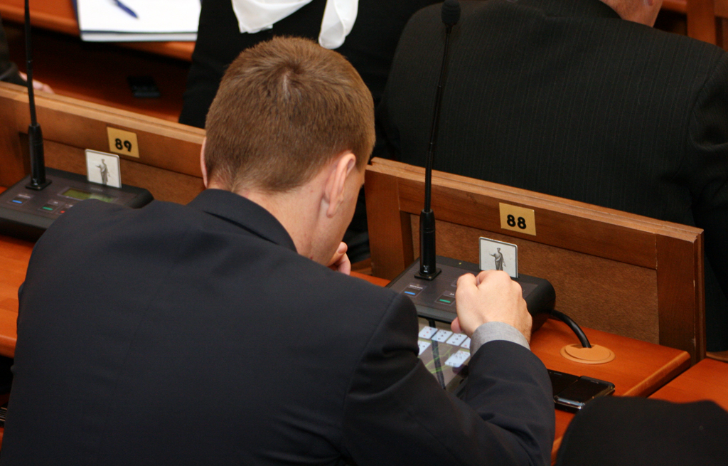 А «напоминалка» перед Костусевым для чего? Депутаты не запоминают или «величие» так распирает, что как зовут он и сам забывает.