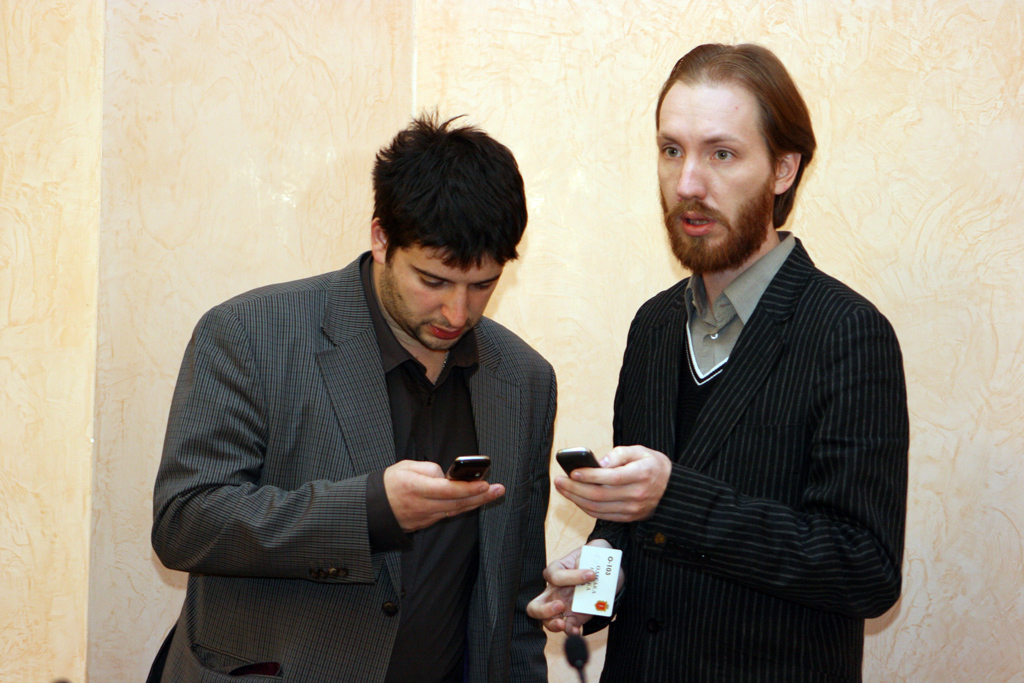 Депутаты от "Родины" Игорь Димитриев и Александр Васильев заняты мобильными телефонами