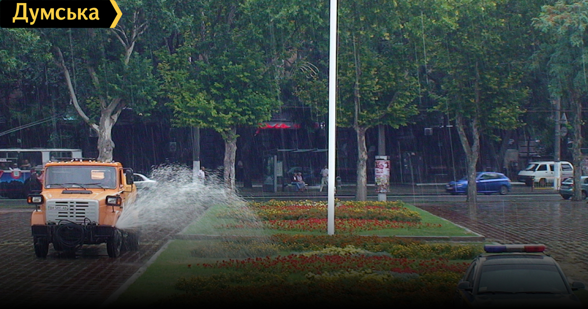 Надо отдать должное одесским властям — траву к приезду президента в зеленый цвет не красили. Зато во время проливного дождя поливали клумбы возле облгосадминистрации.