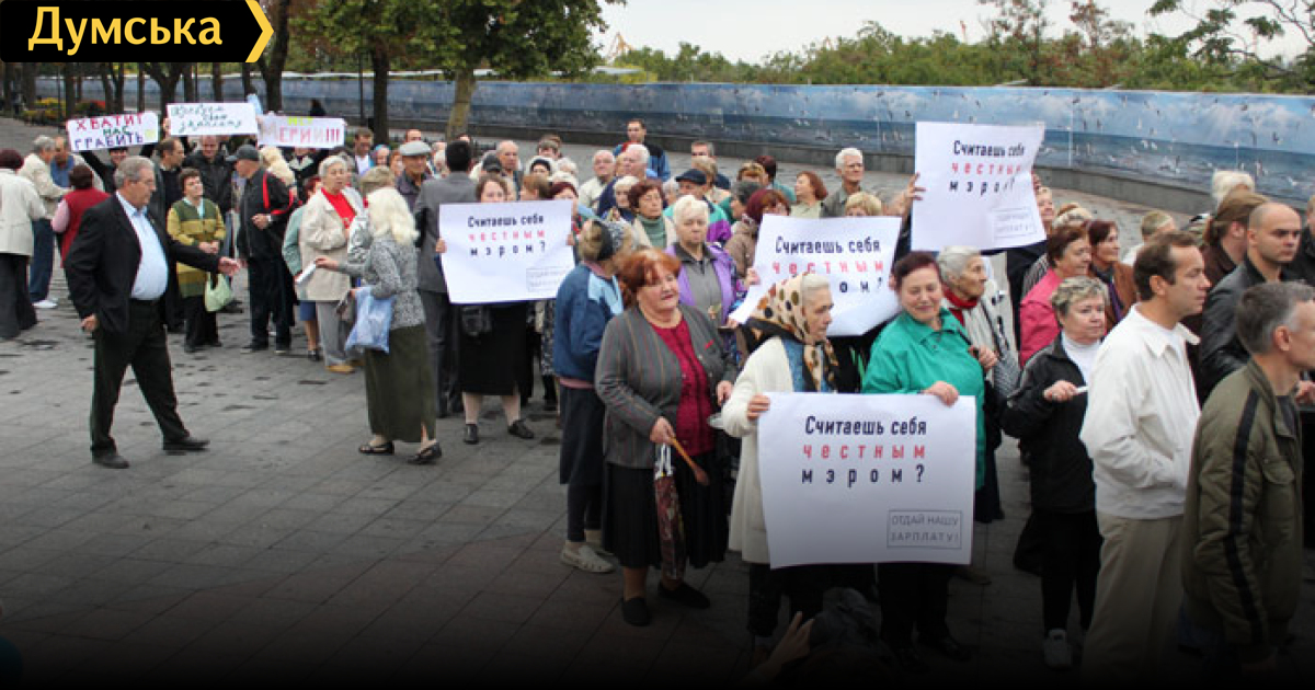 Сегодня на Думской площади проходило две массовых акции. Первая акция проходила в поддержку мэра. Митингующих собралось около 700 человек — студенты, работники ЖЭКов и школ. Они стояли под флагами «Свободной Одессы» и «Комитета обороны Одессы». На импровизированной трибуне выступали одесситы с пламенными речами в честь мэра Одессы Эдуарда Гурвица и критикой оппозиции. Здание мэрии впервые было ограждено двумя рядами металлических ограждений. Также впервые была огорожена территория вплоть до Музея морского флота и улицы Ласточкина. Плакаты промэрского митинга были направлены в основном против Алексея Гончаренко и частично против Игоря Маркова. «Гончаренко — пиараст!», «Гончаренко — консультант, Марков — арестант!», «Гончаренко — сегодня советчик, завтра — ответчик», «Мир и согласие в городе», «Марков, твоя родина — альтфатер». Вторую акцию провели работники КП «Горэлектротранс», которым город задолжал зарплату за уже три месяца. К этой акции присоединилась и общественная организация «Качество жизни», возглавляемая депутатом горсовета Алексеем Гончаренко. Более ста человек прошлись колонной от Воронцовского дворца и до Музея морского флота со стороны улицы Ласточкина. Люди пришли с пустыми кастрюлями и колотили по ним ложками, в знак того, что у них нет денег на еду. Была также небольшая группа протестующих против принятия нового Генплана Одессы. СМЕРТЬ РОСІЙСЬКИМ ОКУПАНТАМ! Помітили помилку? Виділяйте слова з помилкою та натискайте control-enter