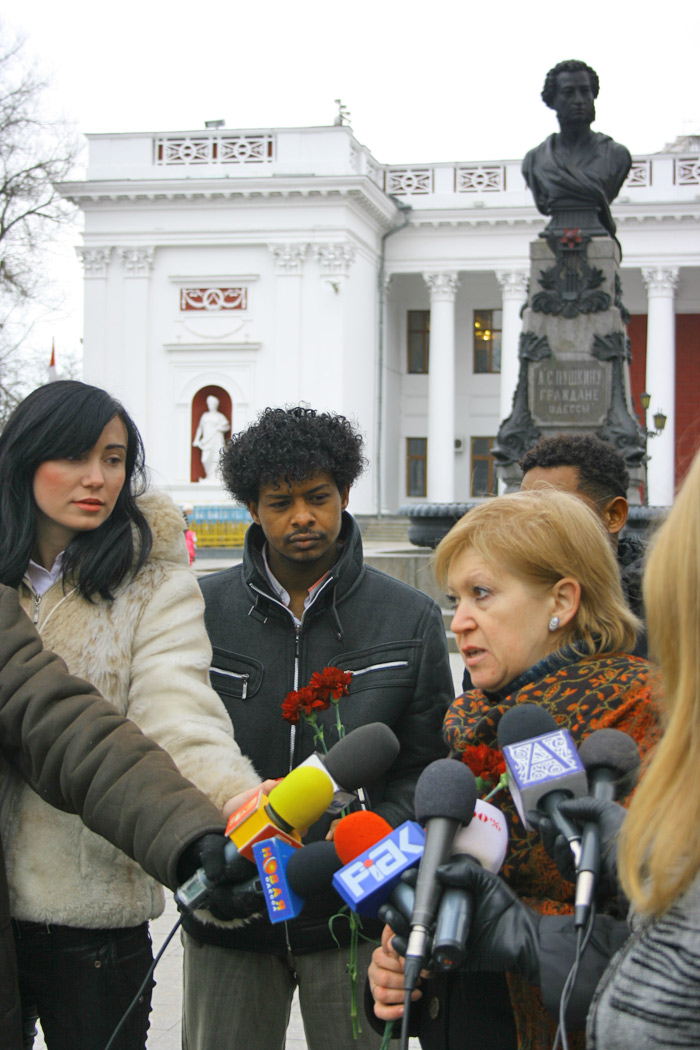 Сегодня любители творчества Александра Сергеевича Пушкина отмечают годовщину смерти поэта (по новому стилю это 10 февраля). Возле памятника русскому гению на Думской площади собрались члены общества пушкинистов, студенты и школьники. Преподаватель Пищевой академии привела своих воспитанников – студентов из Пакистана, Судана и Ирака, которые на ломаном русском читали стихи Пушкина. Пришел возложить цветы к памятнику зам. Генерального консула России в Одессе. Не обошлось и без политики: возле памятника была замечена участница всяческих митингов Нина Качанова с кулечком Партии Регионов и человек с флагом организации ЗУБР (За Украину, Беларусь, Россию). Комментарий редакции Возле памятника великому поэту собралось всего около двадцати человек, причем часть из них – иностранцы. Это говорит о том, что политика государства на искоренение знаний у подрастающего поколения граждан Украины о великих деятелях русской культуры дает свои плоды. Вскоре дети вообще не будут знать, кто такой Пушкин, а их молодые родители с трудом смогут объяснить, в чью честь названа улица и кому установлены два памятника. Гарри Поттер, изучение книги о котором вошло в учебную программу, по мнению наших чиновников от образования, куда как интереснее пушкинских героев. СМЕРТЬ РОСІЙСЬКИМ ОКУПАНТАМ! ![]() Человек, называющий себя поэтом Белым и продающий свои стихи на улицах. Однажды баллотировался в городские головы. Помітили помилку? Виділяйте слова з помилкою та натискайте control-enter Новини по цій темі: 20 грудня 2024: Правда, маніпуляція і сова на глобусі: The Economist пише про культуру скасування в Одесі та Україні (колонка редактора) 26 вересня 2024: Дюжина одеських пам`ятників, за якими деколонізація з декомунізацією плачуть: про деякі ви могли й не знати, інші шокують 2 серпня 2022: ТОП-10 имен, которых не должно быть на украинских улицах от Минкульта: в Одессе есть все - мэрия обещает подумать 2 травня 2019: На Ланжероновской строители кафе нашли кладку, чугунную ограду и дорожку первой половины XIX века (фото) 26 травня 2018: На Дерибасовскую угол Ришельевской вернули "тень Пушкина" (фото) |