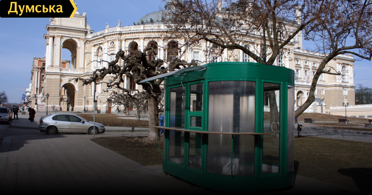 Несколько дней назад в центральной части города появились зеленые киоски — причем один из них был установлен возле Оперного театра прямо в зелёной зоне, часть которой специально под эти ларек заасфальтировали и выложили плитку. В связи с этим Думская.net обратилась за комментарием к начальнику одесского областного управления охраны объектов культурного наследия Наталье Штербуль: