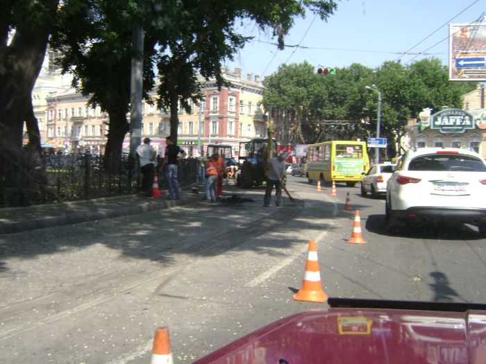 В разгар рабочего дня движение в районе железнодорожного вокзала в Одессе сегодня затруднено — выстраиваются большие автомобильные заторы, создаются аварийные ситуации. И все потому, что лучшего времени, чем «час пик», не нашлось для того, чтобы помыть разделительный барьер на трассе возле ж\д вокзала и укладки асфальта на Привокзальной площади. СМЕРТЬ РОСІЙСЬКИМ ОКУПАНТАМ! Помітили помилку? Виділяйте слова з помилкою та натискайте control-enter Новини по цій темі: 24 вересня 2009: В Одессе обокрали нардепа Сергея Кивалова 24 вересня 2009: Сторонники Гурвица пропиарили Маркова на весь город 25 серпня 2009: Эдуард Гурвиц стал Героем Украины? 15 серпня 2009: Анатолий Вассерман отказался от участия в выборах мэра Одессы 6 серпня 2009: Маразм крепчал (фотофакт) |