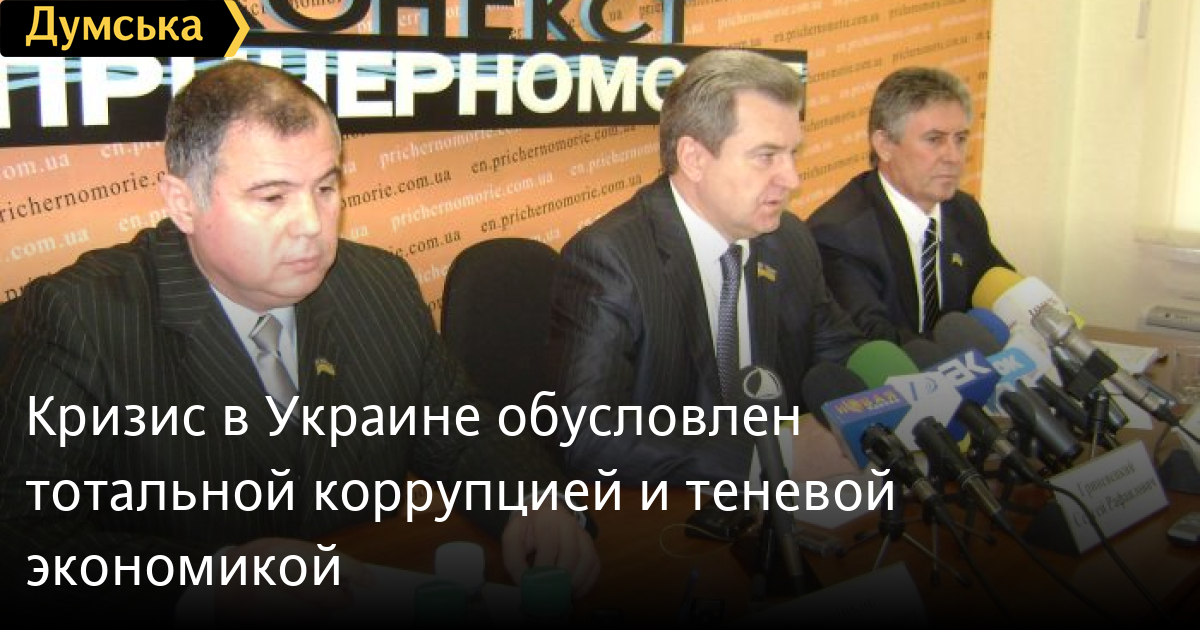 Финансово-экономический кризис в Украине, по мнению нардепа, обусловлен тотальной коррупцией и теневой экономикой. «И, чтобы там не говорили, но тень за последние 4 года только усугубилась. Это способствует снижению качества жизни, социальной защиты, и такое понятие, как социальное сиротство, становится чуть ли не правовым актом», — сказал Сергей Гриневецкий.