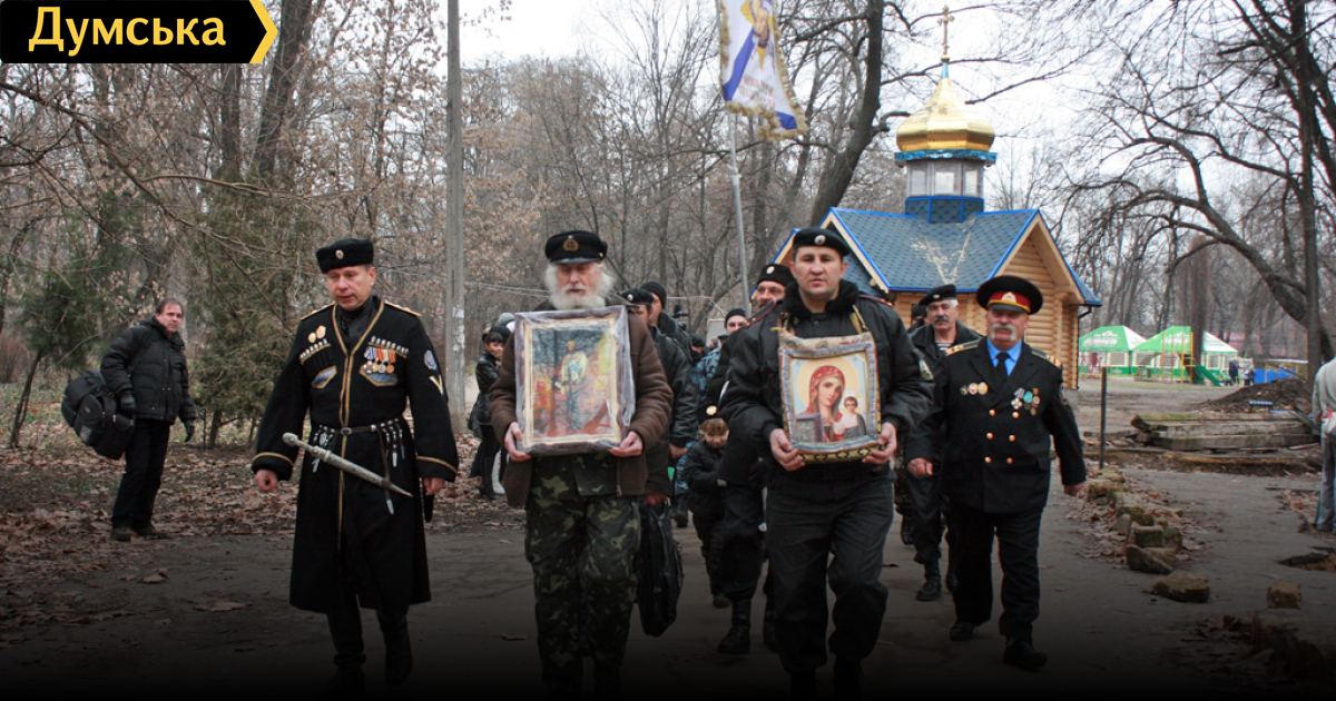 Наблюдал шествие ряженнных, имеющих отношение к Черноморскому казачеству, как я к движению талибан. Кроме дешевого фарса и убогого сценария на крестный ход не увидел. Пытался разглядеть в «разреженной толпе» верного казачьего атамана Гурвица-Гуцуляка, не рассмотрел. Среди малочисленных зевак на тротурае не заметил наших друзей с сайта. Видно опоздал и они разбрелись. Если можно было раньше найти у бабы Ути, то где теперь искать, вопрос.