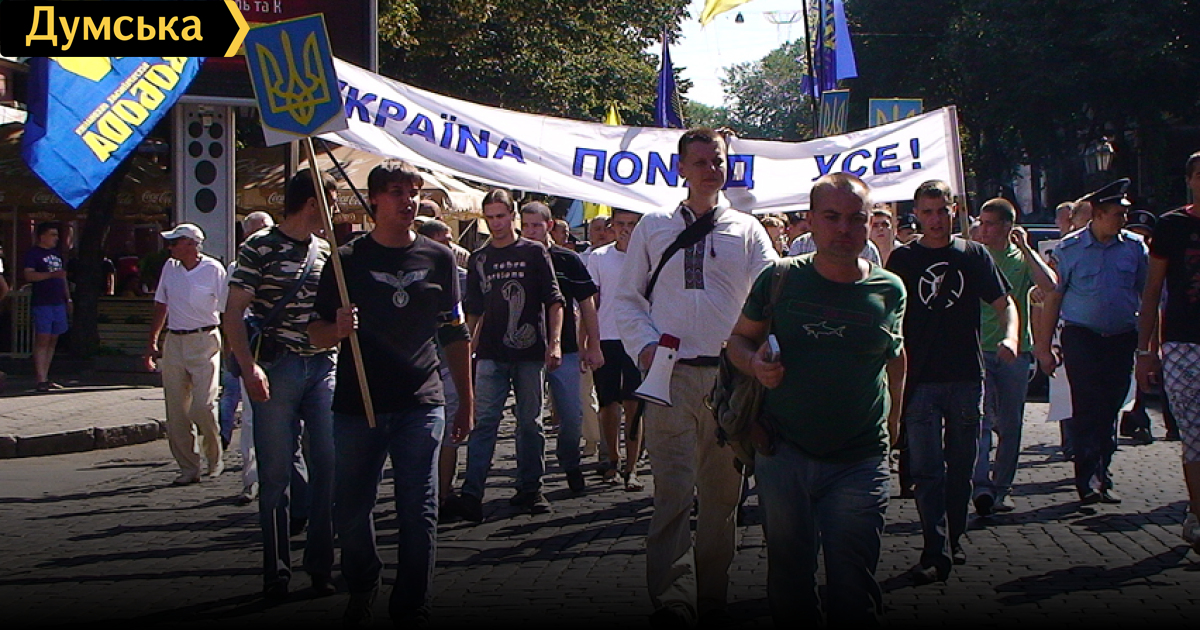 Как мы сообщали, сегодня утром националисты прошлись по маршем по улицам города, несмотря на то, что общественные организации и одесские политики обращались к городским и областным властям не допустить проведения этого мероприятия. В шествии участвовали приверженцы ВО «Свободы», Народного руха, УНА-УНСО, партии «Братство» и др. Примерно 150-200 националистов разного возраста, но в основном молодежь, многие из которых были в вышиванках, почти без эксцессов прошли от памятника Шевченко по центральным улицам Одессы, завершив свое шествие у памятника Ивану Франко на Александровском проспекте. На месте гибели Максима Чайки участники шествия зажгли свечи и почтили его память минутой молчания. Во время шествия националисты скандировали лозунги: «Коммуняку на гиляку», «Геть москалей из Украины», «Бандера прийде — порядок наведе», «Чайка Максим — не забудем, не простим», «Слава нации — смерть врагам» и т.д.