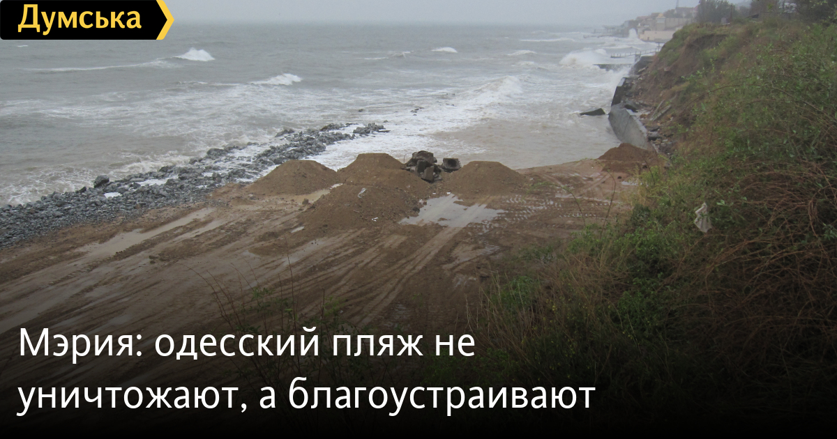 Сообщается, что данный пляж никто не уничтожает — более того, на нем, наоборот, ведутся восстановительные работы — с тем, чтобы «благоустроить» дикий ранее пляж. Напомним, что одесситы, проживающие в этом районе сообщили о том, что пляж засыпан, самосвалы караванами завозят щебень и булыжники, работают бульдозеры и экскаваторы. В мэрии же сообщили, что все это - берегоукрепительные и противооползневые работы, и никто застраивать пляж не будет.