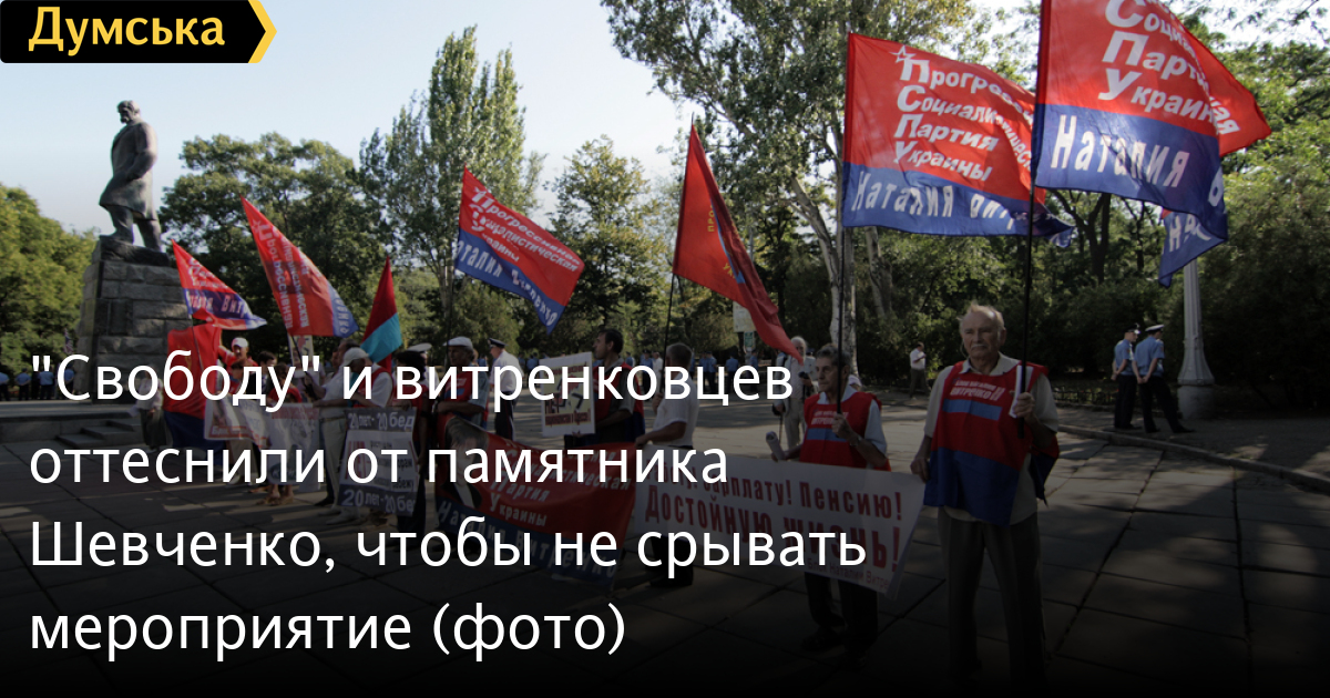 Еще задолго до официального возложения цветов к памятнику Тарасу Шевченко в одноименном парке, возле него заняли место активисты Прогрессивной социалистической партии. К ним пытались прорваться представители одесской «Свободы», но их не пустила милиция, чтобы не провоцировать столкновения.