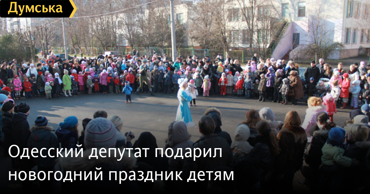 Депутат Одесского городского совета Илья Мозолев устроил настоящий новогодний праздник жителям посёлка Котовского. Он привез с собой деда Мороза, Cнегурочку и других сказочных персонажей, которые подарили детям новогоднюю сказку. Более 400 детей получили новогодние подарки.