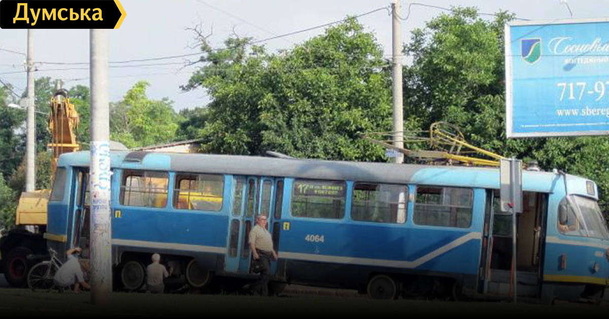 Наш корреспондент стал свидетелем того, как сегодня около 8 часов утра на 10-й станции Большого Фонтана сошел с рельс трамвай. Пострадавших нет. Как сообщили «Думской» в облГАИ, у трамвая внезапно отказали тормоза. Кондуктор успел выпрыгнуть из вагона.