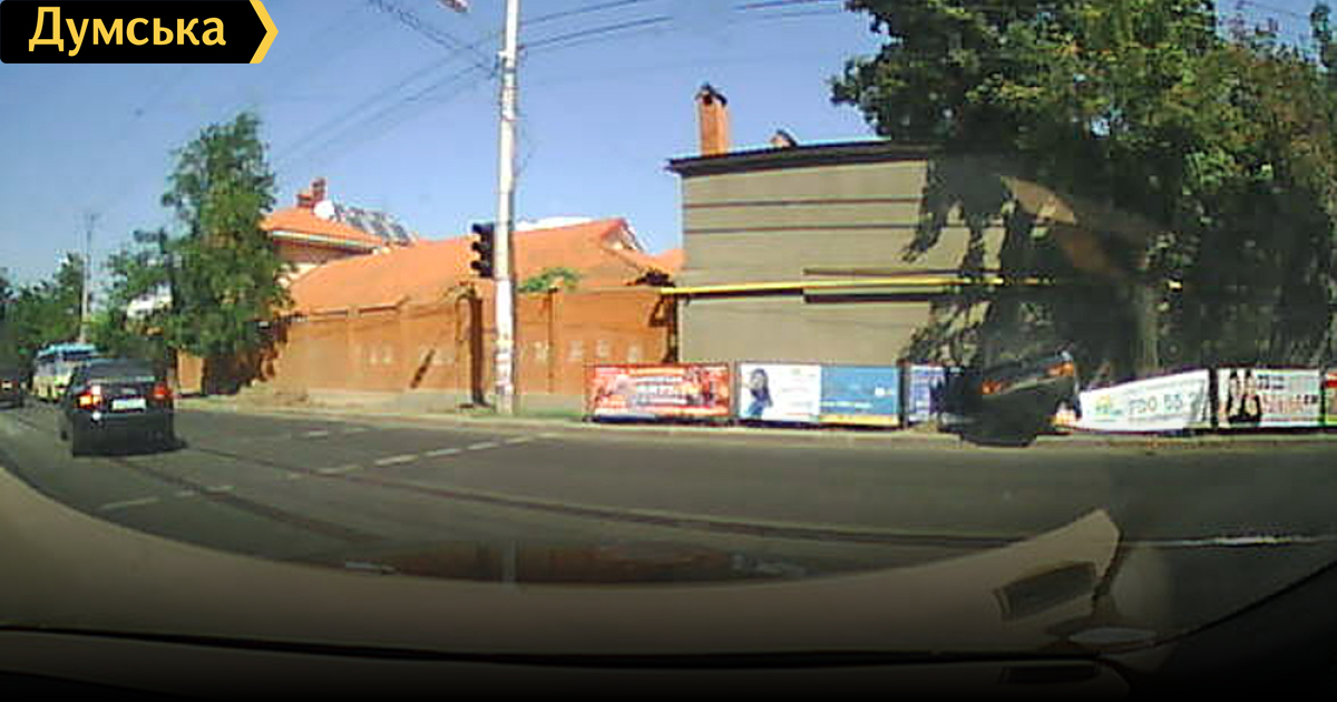 Сегодня около двух часов дня на пересечении улиц Фонтанская дорога и ул. Костанди автомобиль «Таврия» вылетел за пределы проезжей части, повиснув на ограждении с рекламой. Фото пользователя Одесского Форума