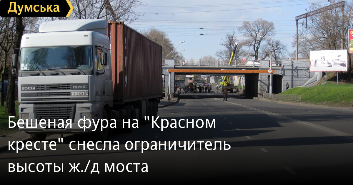 Бешеная фура на «Красном кресте» снесла ограничитель высоты ж./д моста
