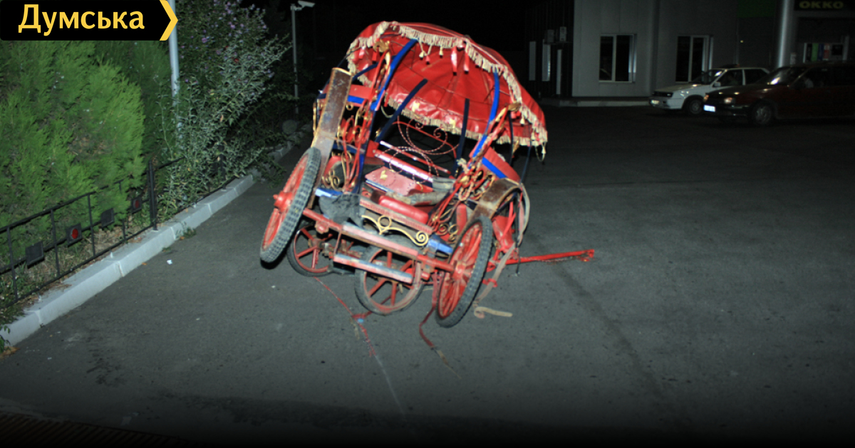 Первой допустил столновение с повозкой водитель ВАЗ 2113; его, в свою очередь «догнала» «Лада Калина». Девушка, сидевшая в повозке, от удара вылетела на проезжую часть. Привести её в чувство удалось только довольно быстро приехавшей бригаде «Скорой помощи».
