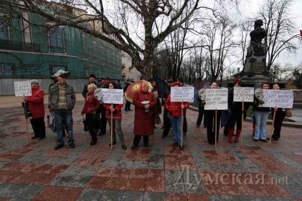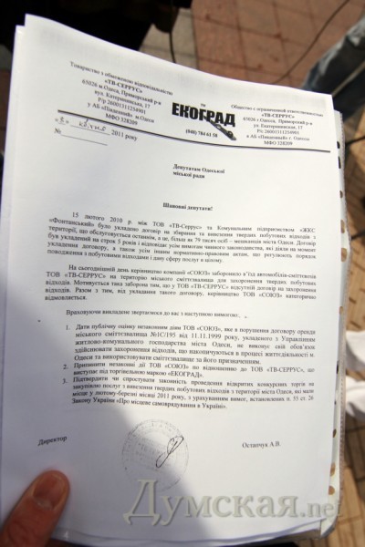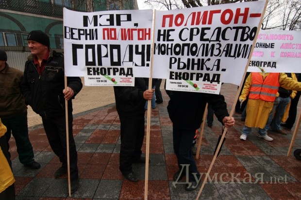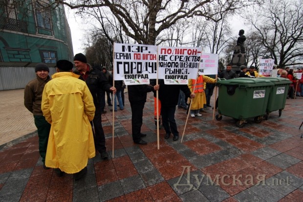 В Одессе началась очередная сессия Одеcского городского совета шестого созыва, на которой ожидается принятие ряда важных решений. Сессию пикетируют сотрудники компании «Экоград», которых вытесняет с рынка мусоуборочная компания «Союз», одесситы, живущие в доме №29 на улице Церковной. Они протестует против новой эстакады, ведущей к т.н. Сухому порту в районе полей орошения. Фуры, которые днем и ночью проезжают по этой эстакаде, очень мешают жителям. Кроме того, они утверждают что эстакада была построена без согласований. Также мэрию пикетируют представители Компартии и пикетчики с портретами Сталина — однако они поддерживают городскую власть. СМЕРТЬ РОСІЙСЬКИМ ОКУПАНТАМ! Помітили помилку? Виділяйте слова з помилкою та натискайте control-enter |