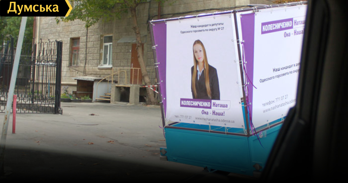 Свидетелем курьезного предвыборного случая в Одессе стал корреспондент Думской.net. По улице Семинарской ездил самодельный так называемый брендмобиль — автомобиль с рекламой. Данная рекламная конструкция была сооружена из обычного автомобильного прицепа с установленными на нём плакатами, прикреплённого к микроавтобусу. Через полминуты наблюдений прицеп с рекламой случайно отцепился от микроавтобуса. Из него вышел человек и вручную подкатил рекламу на колёсах к микроавтобусу и Наша Наташа продолжила путешествие по улицам мажоритарного округа №27.