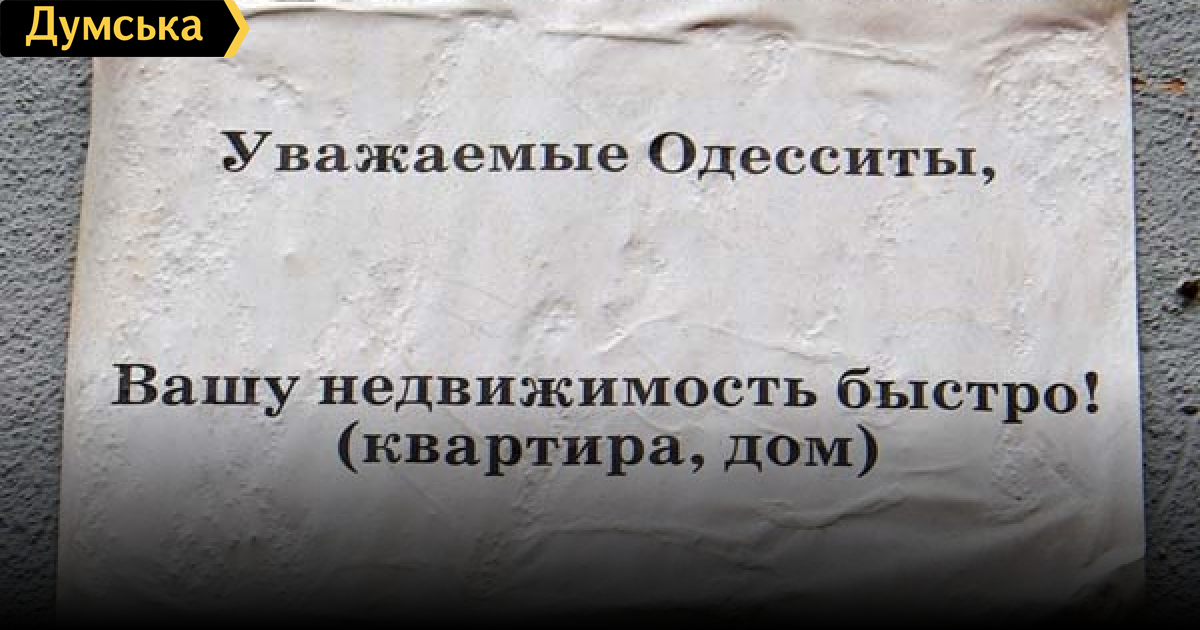 Правдивые объявления об услугах одесских риэлторов. СМЕРТЬ РОСІЙСЬКИМ ОКУПАНТАМ! Помітили помилку? Виділяйте слова з помилкою та натискайте control-enter |