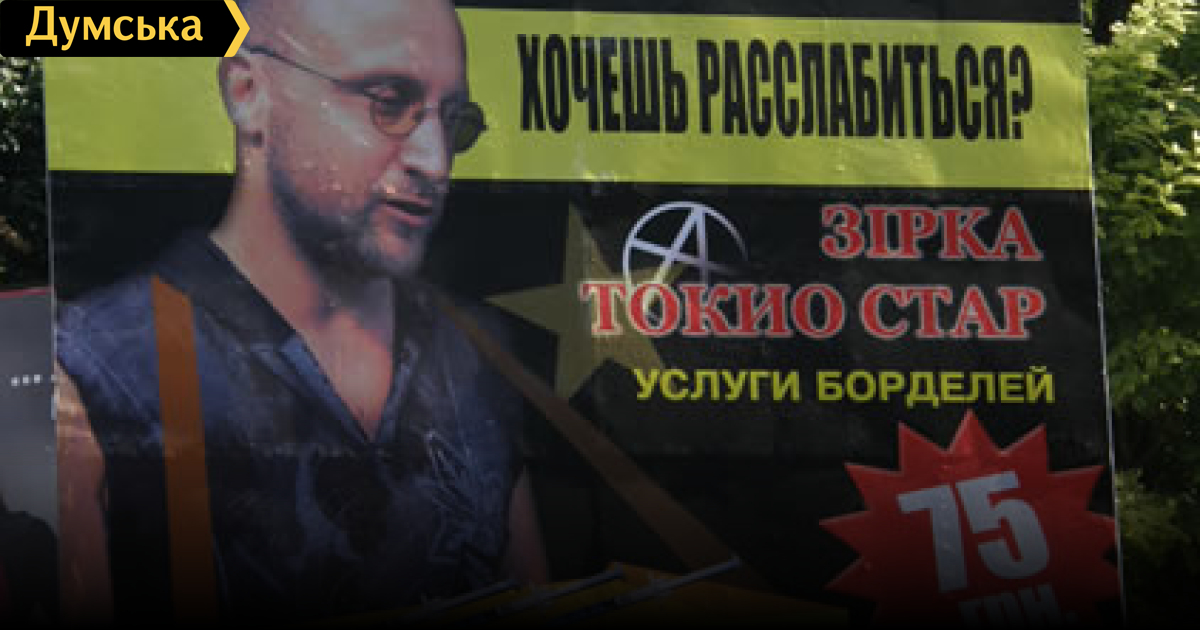 Сегодня на перекрестке улиц Водопроводной и Старосенной площади в районе Одесского железнодорожного вокзала появился билборд с изображением очередного врага мэрии. На рекламном щите — фотография бизнесмена Вадима Черного, владельца отелей «Зирка» и «Токио-стар», имеющих неоднозначную репутацию. Напомним, что в прошлом месяце бизнесмен обвинил в поджоге своего джипа «Хаммер» давнего недруга — мэра Одессы Эдуарда Гурвица. Вадим Черный назвал поджог местью за то, что возглавляемая им организация — Союз анархистов Украины — последовательно боролась против одесского городского головы. Кроме фотографии, на билборде есть надпись: «Хочешь расслабиться? «Зірка»,«Токио-стар»: Услуги борделей за 75 грн.» и знак анархистов. Напомним, что билборды с изображением критиков Эдуарда Гурвица появляются в нашем городе регулярно, с января прошлого года. На них в разное время были изображены: депутат Одесского городского совета Алексей Гончаренко, директор телеканала «Град» Анатолий Балинов, экс-начальница КРУ Лилия Томашевская, президент Федерации футбола Украины Григорий Суркис, депутат и телеведущая Светлана Фабрикант, лидер партии «Родина» Игорь Марков а также одесский бизнесмен Андрей Азаров. СМЕРТЬ РОСІЙСЬКИМ ОКУПАНТАМ! Помітили помилку? Виділяйте слова з помилкою та натискайте control-enter