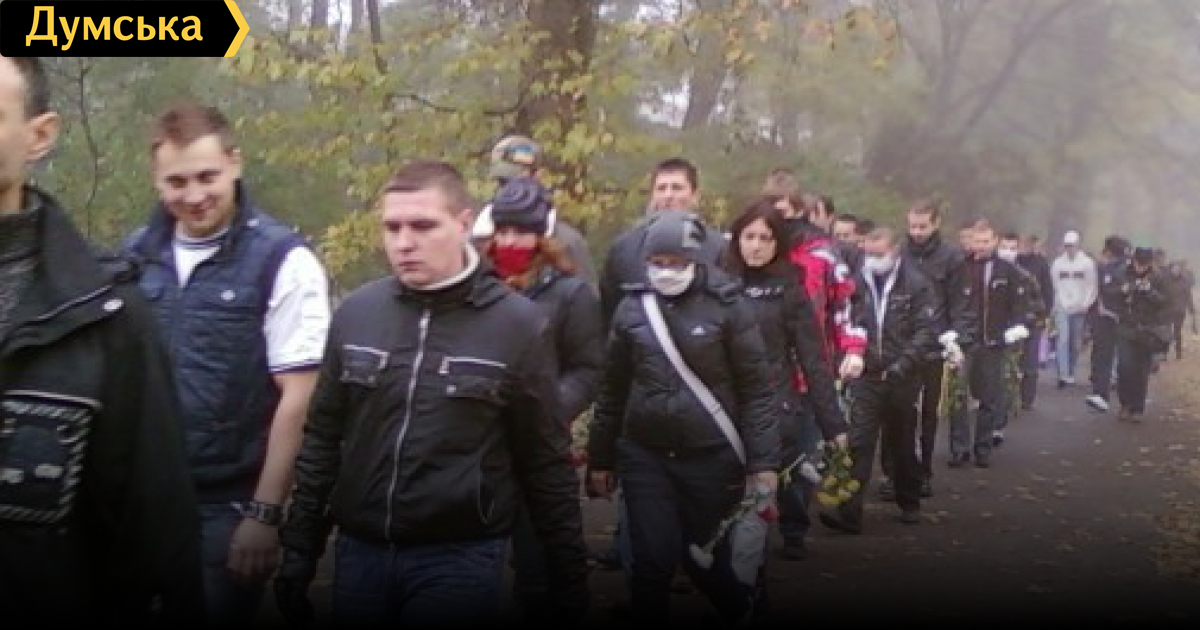 Вчера, 7 ноября, в День Октябрьской революции, представители немногочисленных националистических движений нашего города устроили акцию в Преображенском парке (бывшем парке им.Ильича). Они промаршировали колонной к находящемуся там Памятному Кресту жертвам голодомора и политических репрессий, после чего встали вокруг него в круг и зажгли свечи.