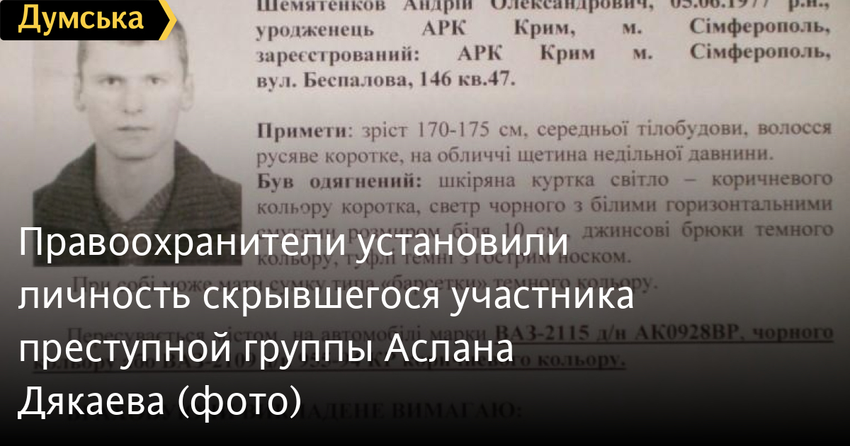 Третьим членом банды Аслана Дякаева оказался 34-летний уроженец Симферополя Андрей Шемятенков. Именно ему, по данным правоохранителей удалось скрыться от правоохранителей во время вчерашней спецоперации на Фонтане.
