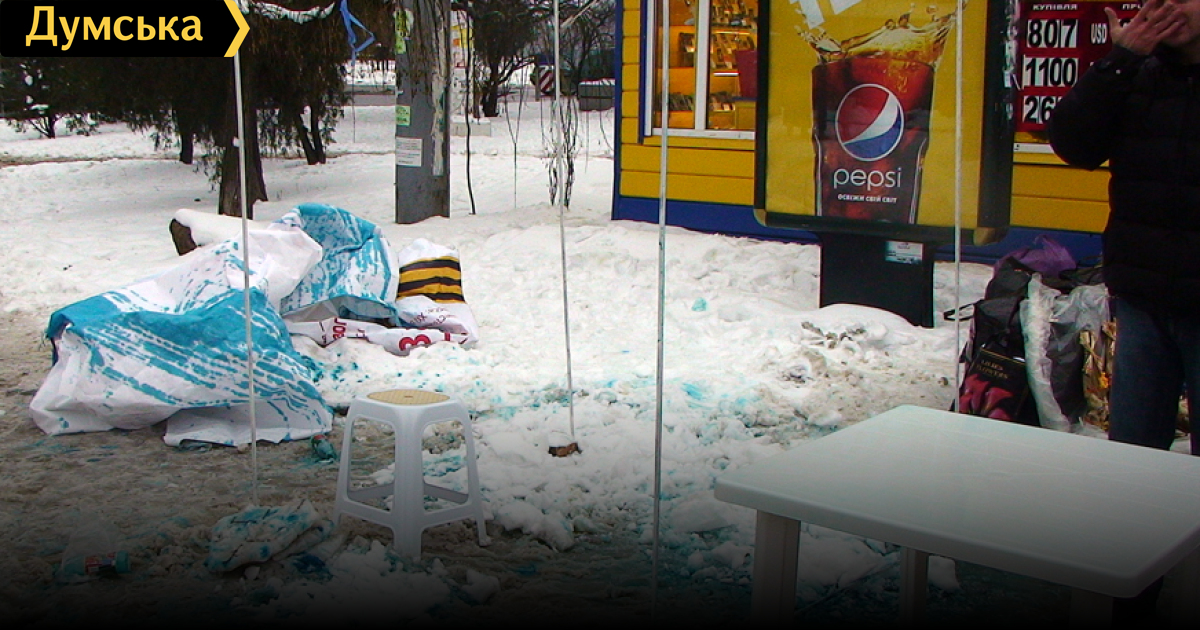 Напомним читателям, что вчера власти уже пытались убрать оппозиционные нынешнему городскому голове палатки по надуманным юридическим причинам. Сегодня власть решила действовать более привычными для себя методами.