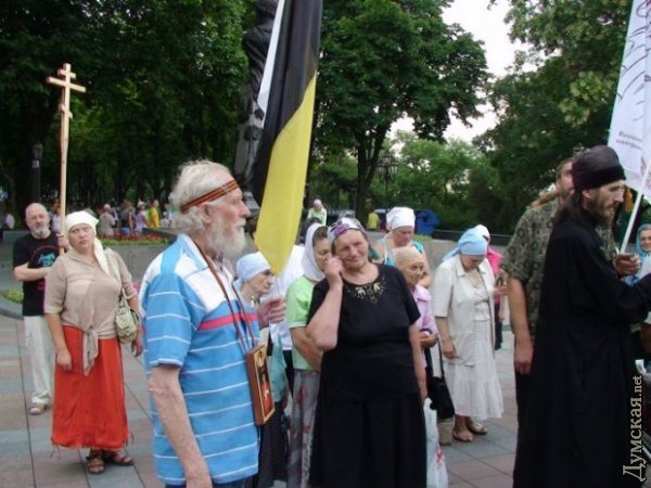 К зданию одесской мэрии пришли люди с флагами и иконами, называющие себя православной общественностью города. Они протестуют против строительства в Прохоровском сквере греко-католической церкви. Перед зданием горсовета они пели молитвы. Не так давно эти же люди приходили к мэрии, чтобы изгнать оттуда бесов.
