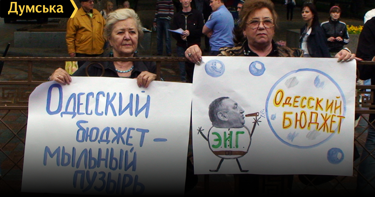 Сегодня утром под стенами горисполкома около пятидесяти одесситов устроили импровизированный пикет, в котором высказали своё отношение к принимаемому сегодня на сессии горсовета бюджету города.