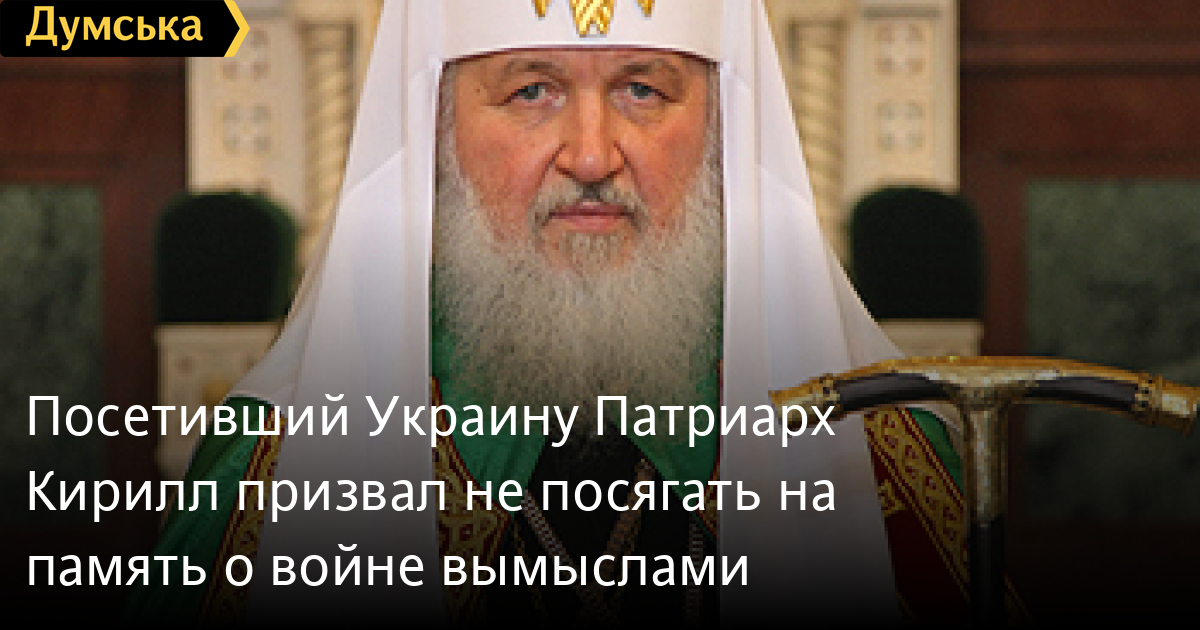 Предстоятель Российской православной церкви, патриарх Московский и Всея Руси Кирилл в преддверии 9 мая, комментируя попытки пересмотра итогов Второй мировой войны, все чаще предпринимаемые на Западе, а также в Прибалтике и в отдельных случаях в Украине, призвал «не посягать на память о Великой Отечественной войне вредными выдумками». Об этом он сказал в обращении к харьковчанам после торжественной церемонии возложения венков к Мемориалу Славы в местном Лесопарке.