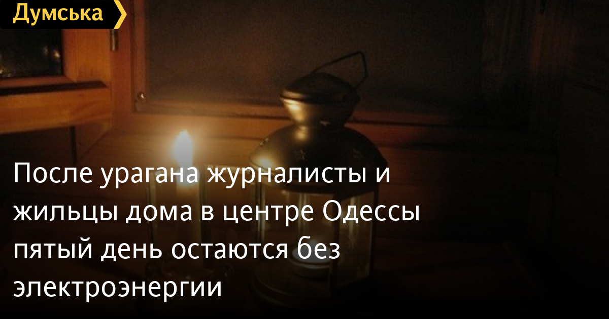 После урагана журналисты и жильцы дома в центре Одессы пятый день остаются без электроэнергииЖильцы дома по ул. Ланжероновской, 5, который находится напротив здания Одесского горсовета, пятый день остаются без электроэнергии. Об этом говорится в обращении ИА «МОСТ-Одесса», которое располагается в том же здании. «Свет отключился еще в воскресенье вечером. Сначала к нам приехали из РЭСа, поменяли трансформатор, но свет появился только в части квартир, т.к. в доме несколько фаз, — рассказывают жильцы. — Потом они приехали еще раз и включили еще часть квартир. Но некоторые квартиры все же остаются без света. На наши обращения в РЭСе сказали, что они к нам больше не приедут. В ЖЭК мы обратились еще во вторник, и с тех пор ждем электрика. Судя по всему, на выходных мы тоже останемся без света». Выходить и перекрывать движение на какой-то из улиц города жильцы не намерены. «Во-первых, нас без света тут мало осталось, в основном, пожилые люди. Да и ближайшая к нам улица, которую теоретически можно перекрыть — за два квартала отсюда», — сказала одна из жительниц дома. СМЕРТЬ РОССИЙСКИМ ОККУПАНТАМ! Заметили ошибку? Выделяйте слова с ошибкой и нажимайте control-enter |