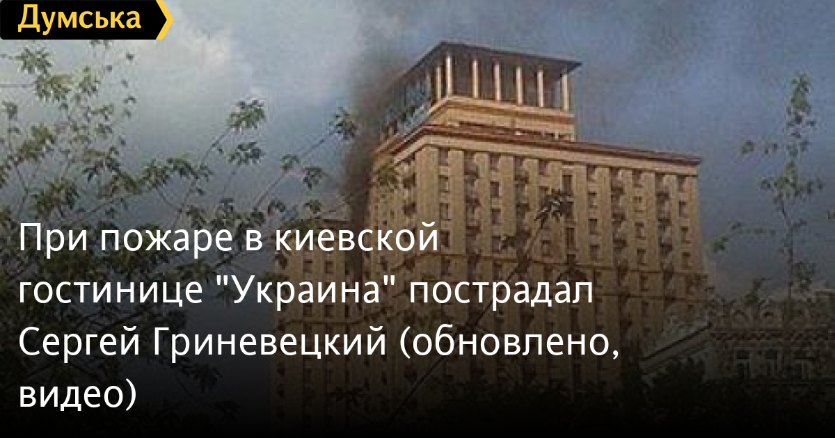 Во время пожара пострадал депутат Верховной Рады, бывший губернатор Одесской области (в 1998-2005 гг.) Сергей Гриневецкий. По информации врачей у него ожоги обеих рук легкой степени тяжести. Как сообщает «Регион Киев Медиа», выйдя из душевой, он принялся тушить пожар собственноручно, в результате чего получил ожоги рук и предплечья. В настоящий момент Гриневецкий направлен в клинику «Феофания». В результате пожара обгорел не только номер 927, но и 10 и 11 этажи гостиницы «Украина».