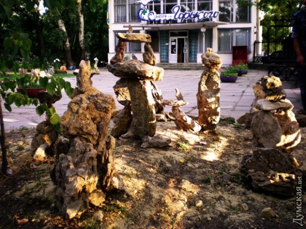 Работник санатория им. М. Горького Сергей, вдохновлённый, по его словам, прекрасной музой — Любовью, создал возле главного входа в здравницу необычный сад камней, некоторые фигуры которого нарушают законы гравитации. Отдыхающие санатория без труда открывали в каждой «скульптуре» десятки разнообразных персонажей. Кто-то видел Карлсона в простыне в тот момент, когда он пугал грабителей, кто-то — дракона, кто-то ковбоя, крокодила или поросёнка. Стоит на сантиметр поменять ракурс, и игра света и формы создаёт на твоих глазах что-то новое и необычное. Сад рекомендуется для посещения людям в состоянии влюблённости. СМЕРТЬ РОСІЙСЬКИМ ОКУПАНТАМ! Помітили помилку? Виділяйте слова з помилкою та натискайте control-enter |