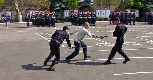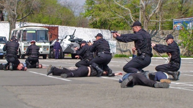 Французские жандармы в Одессе занялись полезным делом — с 12 по 30 апреля военослужащие Южного териториального командования ВС Украины проходили практические занятия под руководством инструкторов Национальной жандармерии Франции. Сегодня на территории Управления командования прошли показательные выступления 24-х военнослужащих. В Одессе подобного рода тренировки проходят впервые, однако в прошлом году французская жандармерия проводила подобные мероприятия во Львове. Также в планах жандармерии открытие учебного центра под Киевом. Всё это проходит в рамках подготовки к Евро 2012 в частности — и евроинтеграции нашей страны в целом. По словам Начальника Южного териториальногокомандования генерал-лейтенанта Сергея Ярового, французы в первую очередь готовят наших правозащитников психологически. Сотрудник правоохранительных органов должен профессионально исполнять свои обязанности по защите общественного порядка, не мешая при этом болельщикам. Не важно, кто стоит перед милицмонером — преступник, чиновник или бомж, он впервую очередь человек, и вести себя с ним нужно соответственно. Показательные выступления проходили в 7 этапов: - Проверка личности подозрительных граждан во время патрулирования (обычные и опасные обстоятельства); - Контроль автомобиля во время проверки личности водителя на посту охраны гражданского порядка (обычные и опасные обстоятеьства); - Задержка автопатрулём преступника находящегося в розыске; - Обеспечение пропускного режима во время проведения футбольного матча; - Демонстрация техники рукопашного боя; - Тактическое передвижение правоохранителелей во время ранения сотрудника; - Задержка преступников во время совершения злодеяния. СМЕРТЬ РОСІЙСЬКИМ ОКУПАНТАМ! Помітили помилку? Виділяйте слова з помилкою та натискайте control-enter |