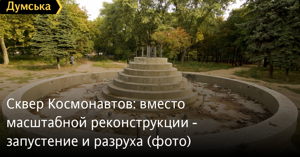 Предвыборный ход прежнего мэра Эдуарда Гурвица — масштабная реконструкция сквера Космонавтов, заглохла на корню. В данное время работы давно уже не ведутся, а сквер остался раскуроченным, местами перепаханным и полностью забытым новыми городскими властями.