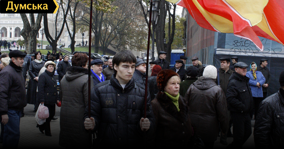 Однако уже с проловины одиннадцатого утра власти привезли к зданию мэрии массовку — работников коммунальных служб и бюджетной сферы — учителей, врачей, а также студентов со флагами «Свободной Одессы» и т.д., чтобы создать видимость большой толпы. Наш корреспондент, например, заметил в толпе чуть ли не весь педагогический коллектив одной из одесских школ, где он когда-то учился.