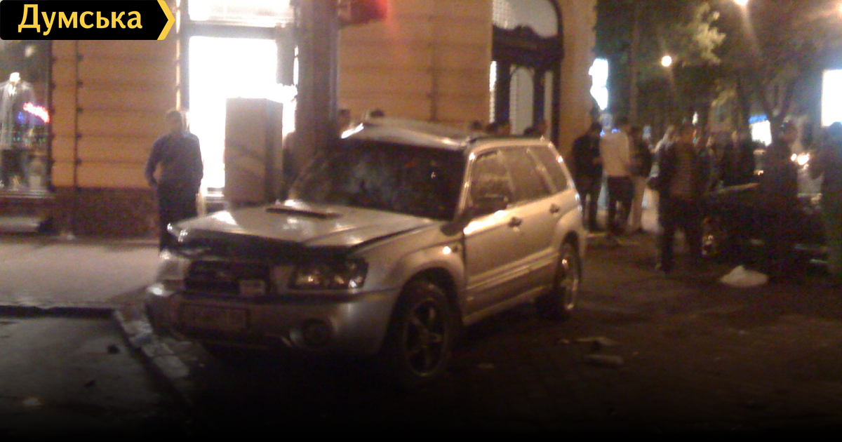Около полутора часов назад на углу Ришельевской и Жуковского чёрный Бентли ударил в правую сторону Субару. Обе машины вылетели на тротуар в районе магазина «Кардинал». Очевидцы сообщили, что под машиной лежит человек и лужа крови, а с «Бентли» сняты номера, но это информация позднее не подтвердилась. Сидевшую за рулем «Субару» 60-летнюю женщину с сильной черепно-мозговой травмой увезли на машине «скорой помощи».