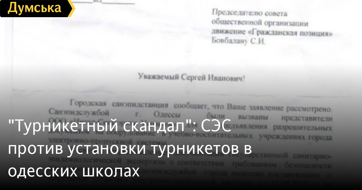 В документе, подписанном Главным государственным санитарным врачом Одессы Иваном Климентьевым отмечается, что представители ООО «Интел-Секьюрити Украины» не предоставили СЭС документов государственной санитарно-эпидемиологической экспертизы о соответствии турникетов требованиям безопасности для здоровья человека.