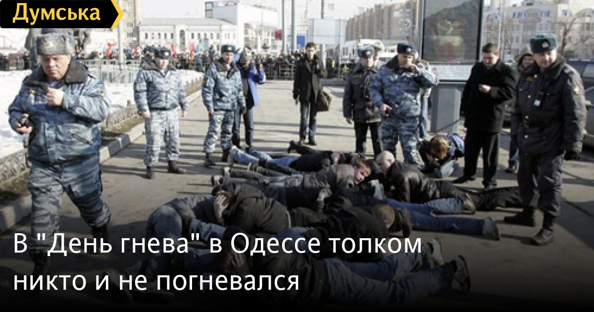 Всеукраинская акция протеста «День гнева», которая в Киеве закончилась столкновениями митингующих с «Беркутом», в Одессе не вызвала особого резонанса. Так, вчера к зданию мэрии на Думскую площадь Одессы пришли порядка десятка протестующих, среди которых – общественные деятели, соратники экс-мэра Э.Гурвица: Феликс Кобринский и Сергей Гуцалюк. При этом здание муниципалитета стерегли несколько десятков правоохранителей. Тем временем, порядка 80 представителей партии «Фронт перемен» вышли к стенам Одесской облгосадминистрации. По словам председателя одноименной фракции в Одесском горсовете Александра Остапенко, политическая сила не получала приглашений на участие в акции. «Наши партийцы решили выйти на митинг в срочном порядке сами. Наша позиция в том, что Президент в результате неудавшихся и непродуманных реформ и отсутствия комплексного плана развития страны должен отправить правительство Азарова в отставку», – отметил Остапенко. Отметим, что акция протеста «День гнева» в Одессе была анонсирована на 11:00 14 мая на Думской площади. Кроме того, организаторы тпризвали граждан выйти к стенам облгосадминистраций всех регионов Украины. «Эта акция должна стать сигналом того, что ни псевдореформы, ни псевдореформаторы Украине больше не нужны. С каждым днем жизнь украинцев существенно ухудшается. Если не остановить этот процесс сейчас, завтра не будет иметь смысла. И быстрота, с которой Украина летит в пропасть, не оставляет времени для раздумий. 14 мая все граждане, небезразличные к судьбе Украины, должны выйти на улицы и показать всему миру, что украинская не является молчаливым стадом, которое можно безнаказанно гнать на убой», – отметили организаторы.
