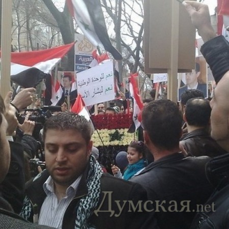 У стен консульства Сирии в Одессе состоялся митинг в поддержку сирийского президента Башара Аль-Асада. В акции приняли участие сотни сирийцев, проживающих в Одессе.