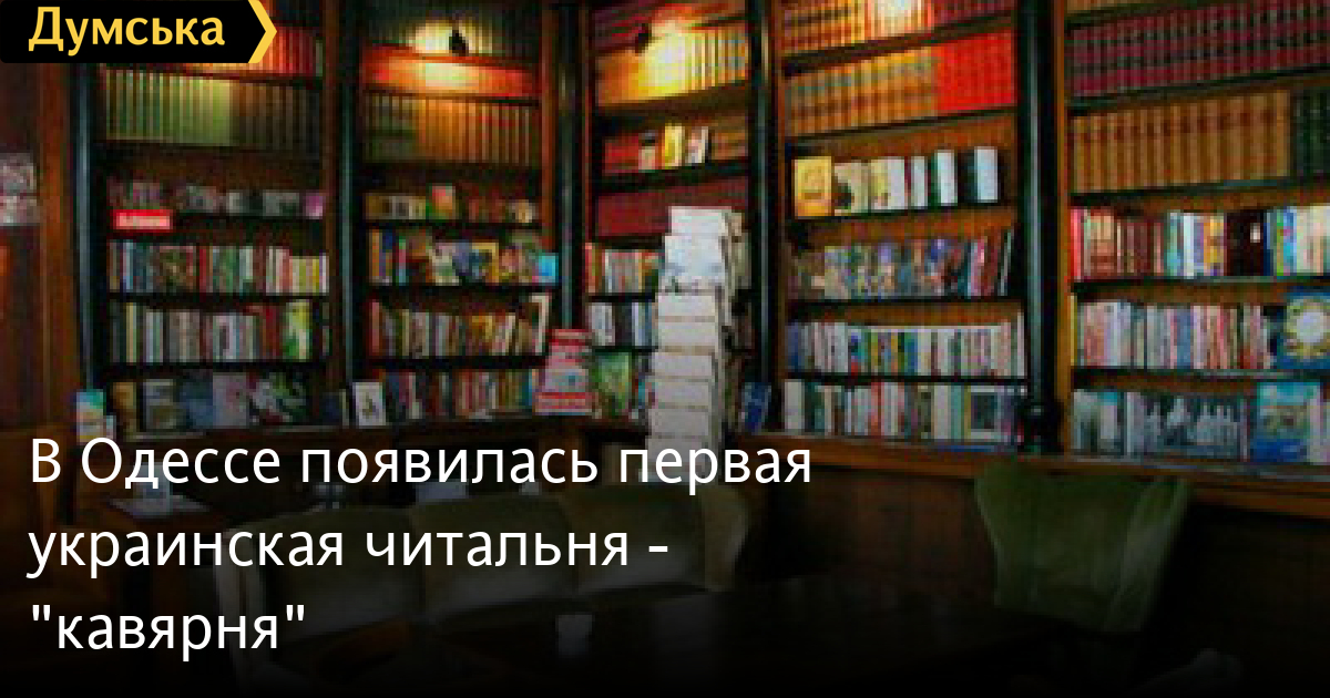> Однако это не значит, что книги будут только на украинском. В таком случае это уже не является первой читальней. Первая — арт-кафе \«Победа\» (зал \«библиотека\»), следом за ней \«Гоголь у моря\».