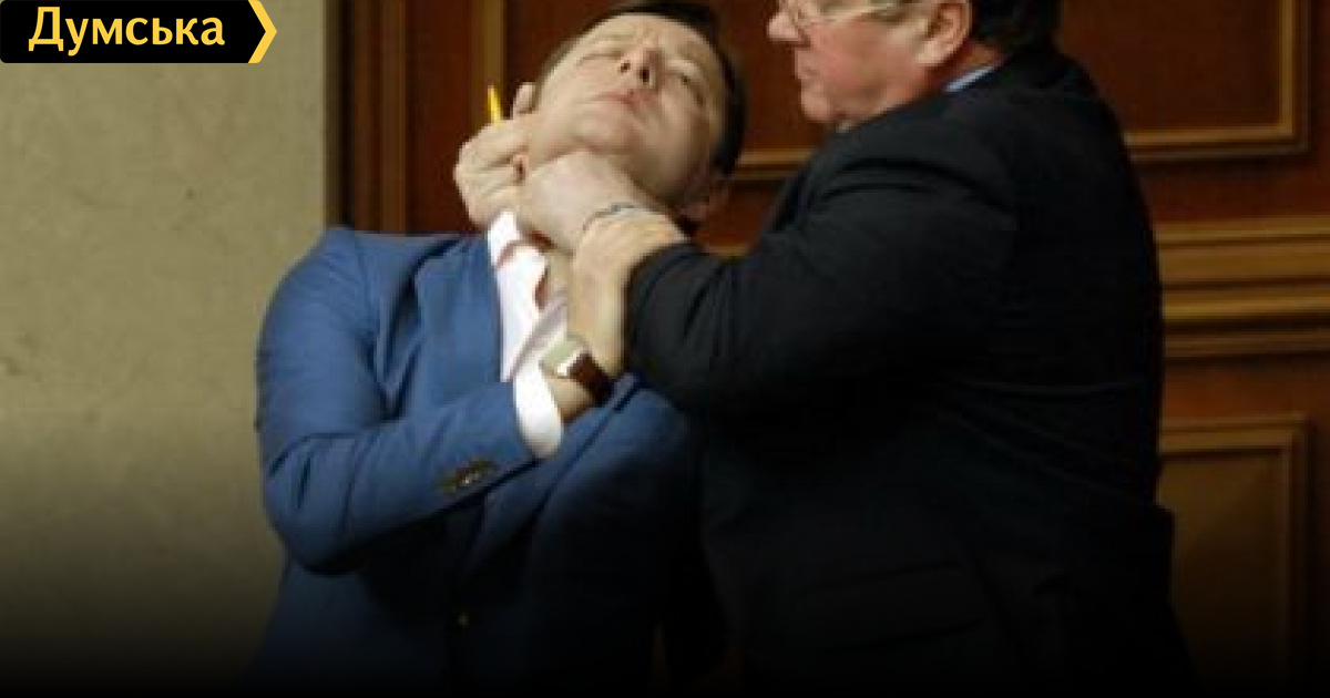 Депутат упал в президиуме, однако в этот момент депутаты фракции КПУ и партии регионов вмешались в ситуацию, разборонив столкнувшихся. Депутаты вывели Ляшко из президиума на его рабочее место.
