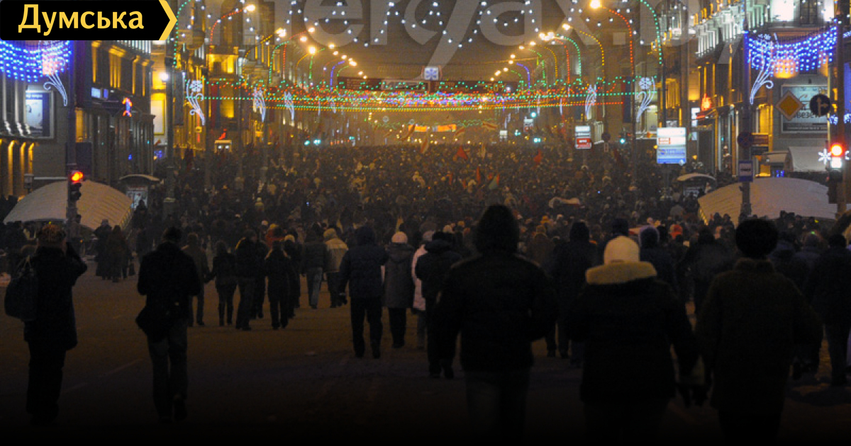 Собравшись на Октябрьской площади, оппозиционеры после непродолжительного митинга вышли на проспект Независимости и, несмотря на попытки сотрудников милиции помешать им, перекрыли движение.
