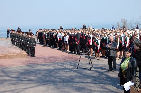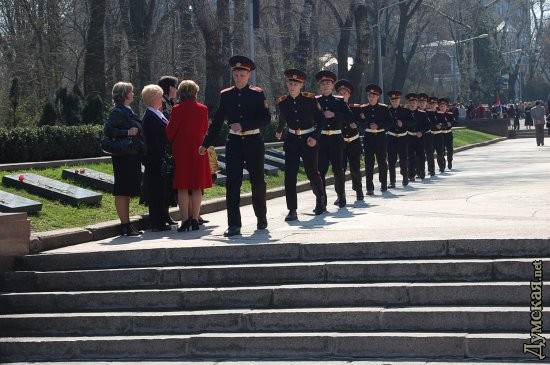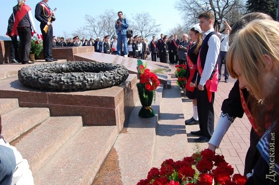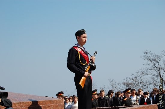 Сегодня на Аллее Славы прошла торжественная передача мемориальной Вахты памяти на Посту №1 караулами, признанными лучшими по итогам несения вахты в 2008 году — школе-интернату №2. Торжественное мероприятие было посвящено 65-летию освобождения Одессы от фашистких захватчиков и открытию сезона Вахты Памяти на Посту №1. Во время мероприятия прошел торжественный мемориальный час в память о героях, защищавших и освобождавших Одессу от фашистких оккупантов. Во время этого часа знамя Поста №1 было торжественно передано учащимся Одесской школы-интерната №2, которым выпала честь первыми в этом году стоять в почетном карауле у памятника Неизвестному матросу. Участники вахты возложили цветы к памятнику, а в торжественно митинге, посвященном этому событию, приняли участие ветераны и постовики прошлых лет. Они вместе со школьниками — участниками Вахты Памяти — почтили память погибших героев минутой молчания. СМЕРТЬ РОСІЙСЬКИМ ОКУПАНТАМ! Помітили помилку? Виділяйте слова з помилкою та натискайте control-enter |